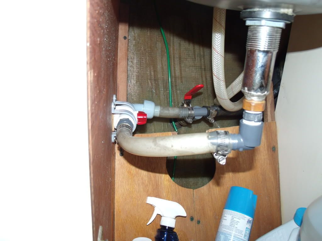 Next effort.  Should show a bit more of the Y valve switch between thru hull flush or shower sump flush: